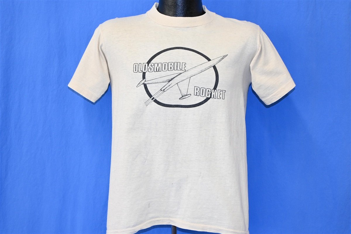 This awesome shirt remembers the Oldsmobile Rocket, a nickname for the Oldsmobile V8 engine. Oldsmobile was a middle-of-the-road brand under General Motors. It was above Chevy and Pontiac in terms of luxury but below the high-end brands Buick and Cadillac. Unfortunately, Oldsmobile dissolved in 2004 but at the time of its cessation, it was one of the oldest American automobile brands still remaining.