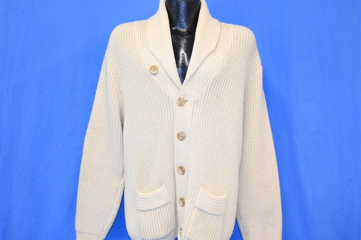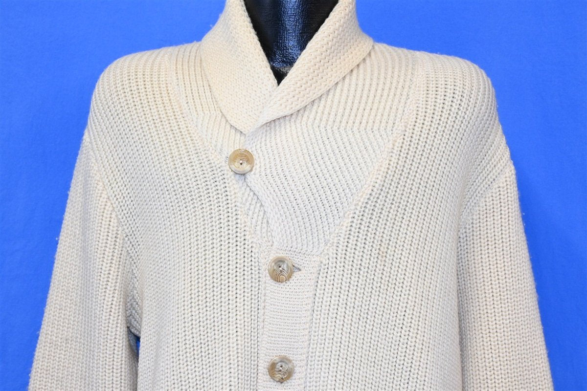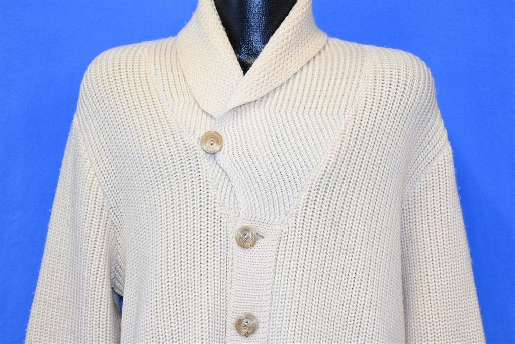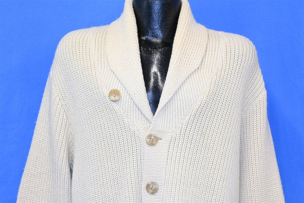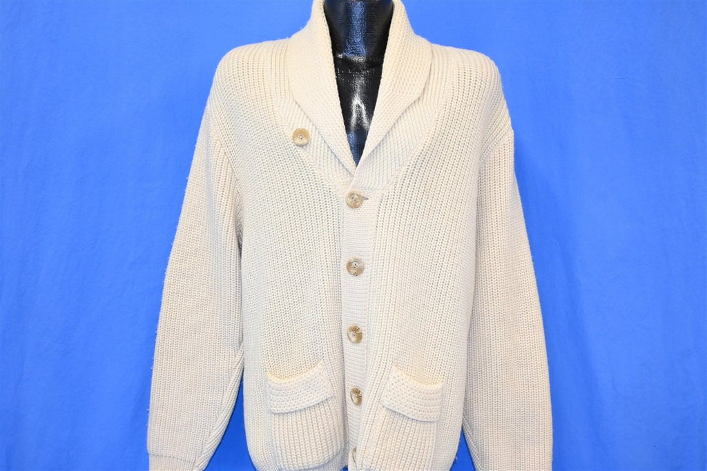 70s Cardigan Shawl Neck Wool Button Up Sweater Large