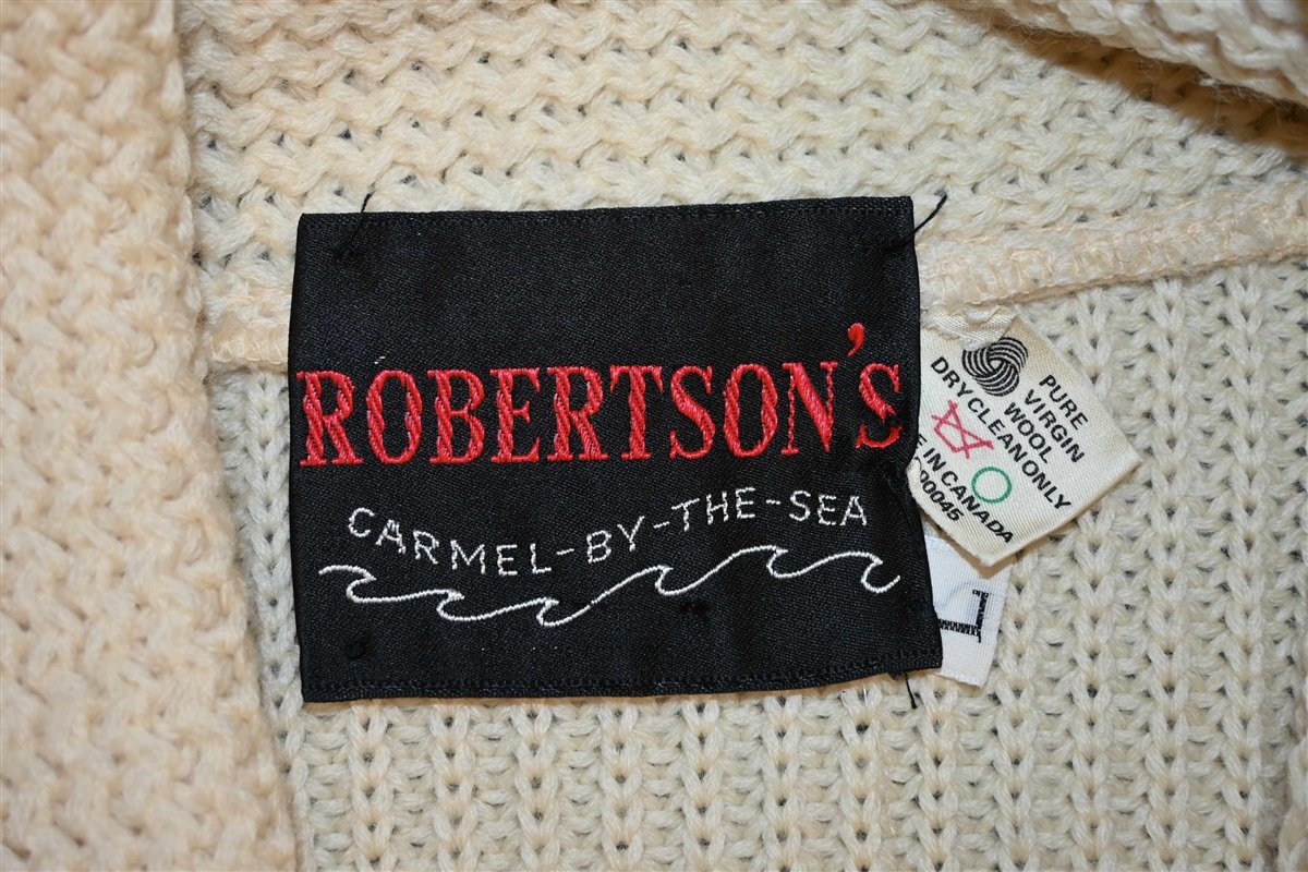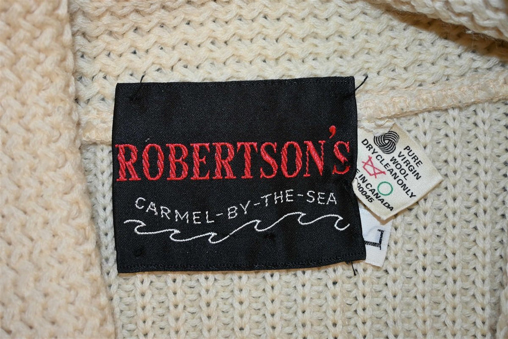 This stylish beige cardigan is made from a thick and cozy 100% wool and the sweater dates back to the 1970s. This sweater features a large shawl neck style collar that can be buttoned up for extra warmth. The front of the sweater also has two, hand pockets and some tortoise shell button closures.