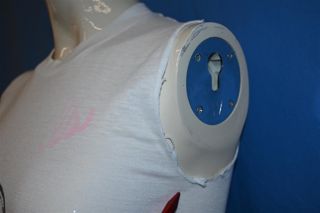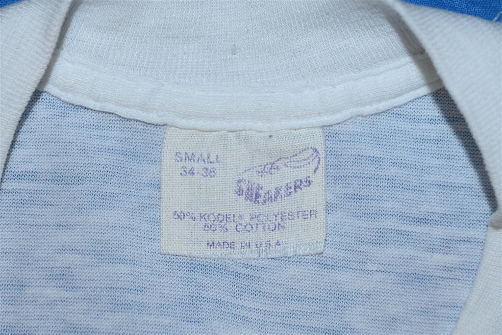 The tag says small but fits like a modern adult women's extra small. The sleeves have been cut and this shirt is soft, thin, and faded, see pics.
