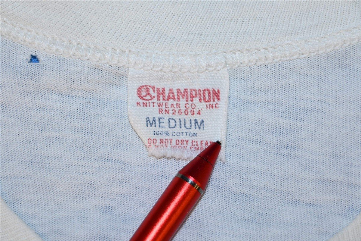 This t-shirt dates all the way back to the 1960s, as shown by its unique Champion tag that features the classic Running Man logo. The logo appeared on the brand's early merch tags in the 1940s, and was eventually phased out by the end of the 60s. That means that this t-shirt is from the early days of the locally loved Laidlaw dealership.