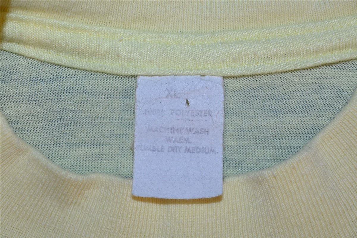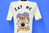 This awesome vintage shirt was made back in the 70s and it features a sweet neon iron on graphic from Roach as well as fuzzy letters that read, "eat me". Roach was known particularly throughout the 70s for their amazing and unique iron on t-shirt designs.