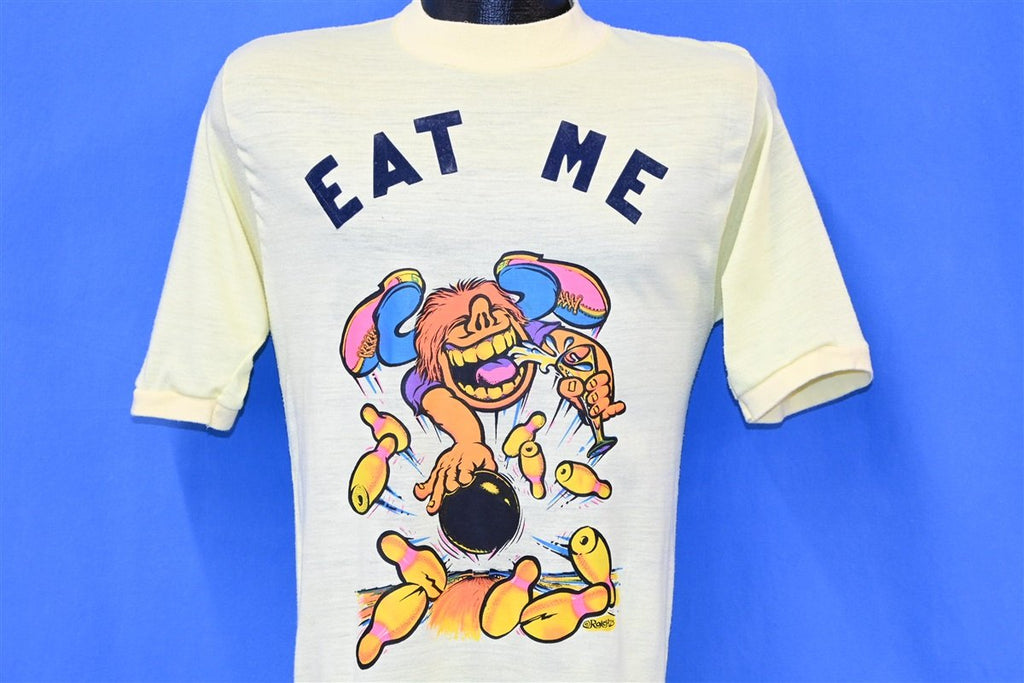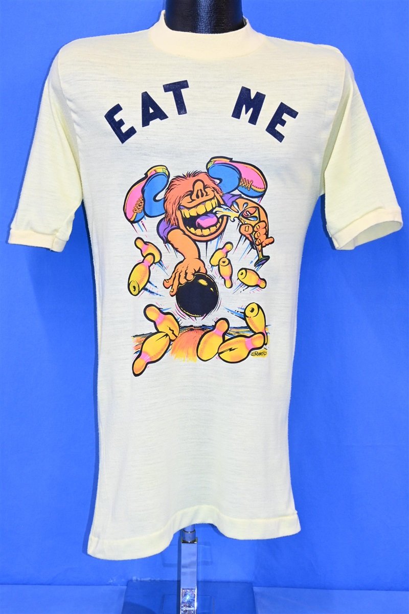 70s Eat Me Bowling Roach Iron On Cartoon t-shirt Small
