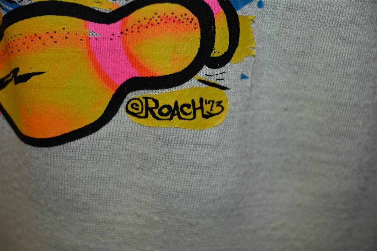 The company was started by Russ and Dennis Roush in the early 60s, and the pair was inspired by the California car scene and the bold artwork of people like Ed Roth, Stanley Mouse, and Von Dutch. Roach was created with the intention to capture the feel of the imagery seen in Hot Rod Magazine and Zap Comix and place it onto t-shirts. When the iron on transfer process was introduced, Roach was able to mass produce their tees more efficiently and eventually t-shirt shops popped up all over the nation inspired by Roach.