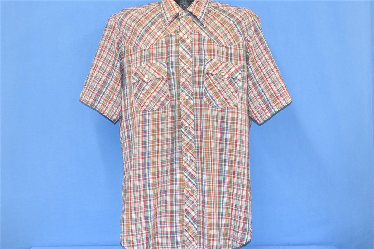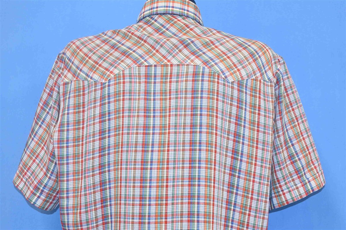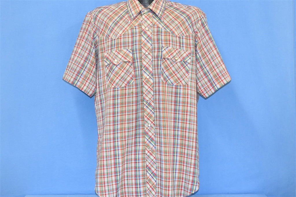 70s Multi-Color Plaid Pearl Snap Western Shirt Large