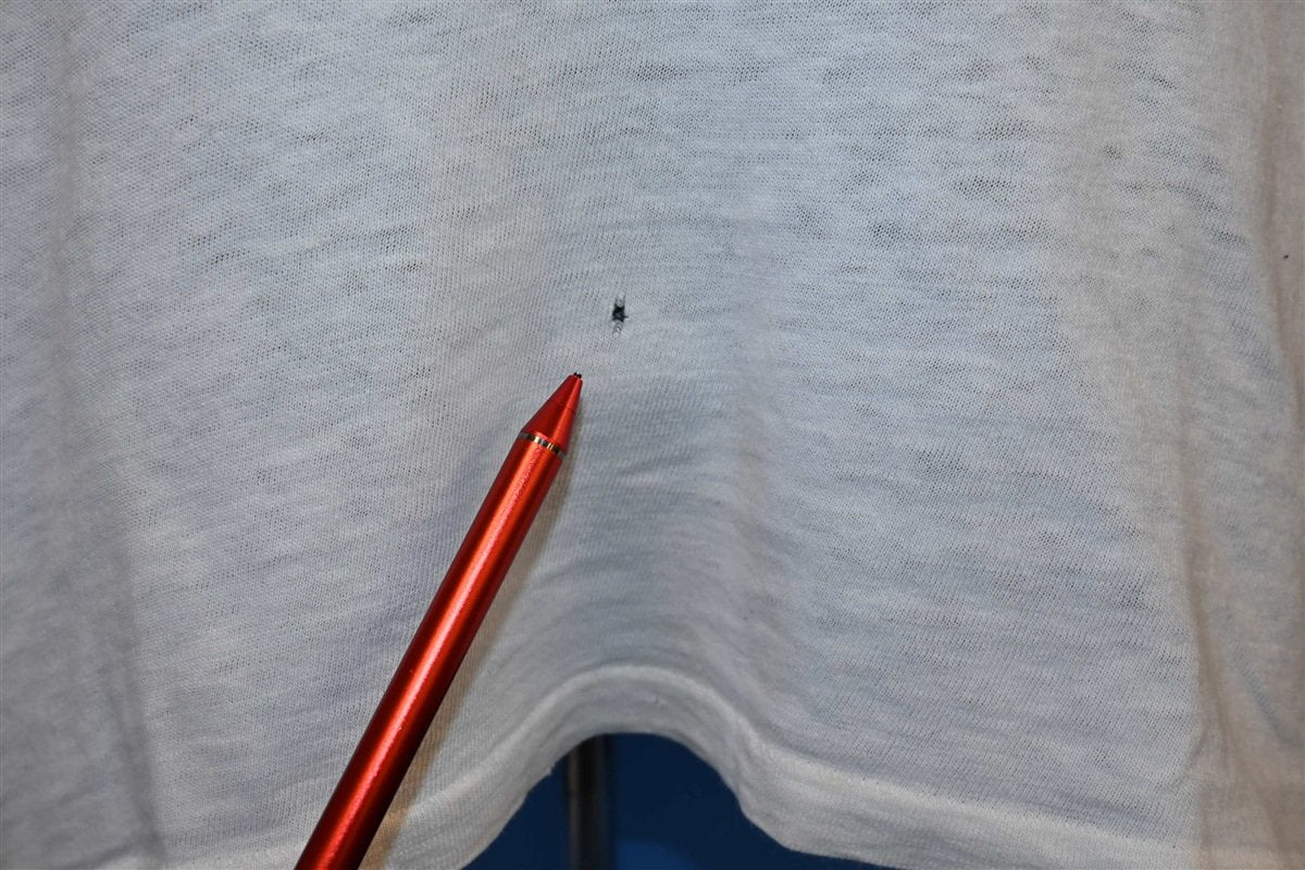 Fits like a modern unisex youth oversized medium. There are some holes on the front, see pics.