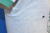 This shirt fits like a modern unisex adult small. There is a repair in the right armpit of the shirt while wearing, as well as small holes throughout the fabric, see pics.