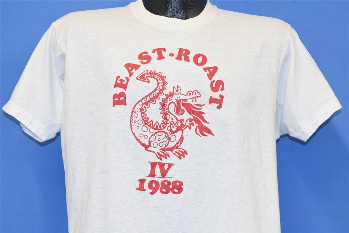 There's not much information about the origins of this cool tee, but it's got a sweet graphic advertising an event called the Beast Roast. According to the shirt, this was the fourth edition of the event, and it was held in 1988. While it's unclear exactly what the Beast Roast entailed, this shirt remains a unique and stylish find, and it's decorated with the image of a fire-breathing dragon.