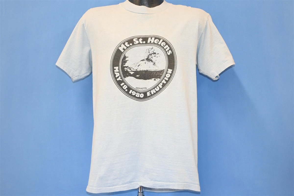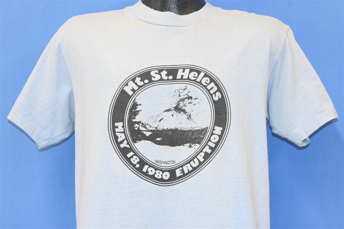 This vintage shirt commemorates the infamous eruption of Mount St. Helen's that took place on May 18th in the year 1980. This was the first volcanic eruption to occur in the US in 65 years, and it is remembered as the most disastrous, resulting in 57 known casualties. The eruption decimated hundreds of square miles surrounding the volcano, but it also led the state of Washington to declare May "Volcano Awareness Month", and the Mount St. Helens National Volcanic Monument was preserved in the wake of the disaster.
