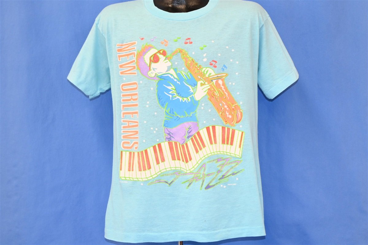 80s New Orleans Jazz Saxophone Keyboard Neon t-shirt Large