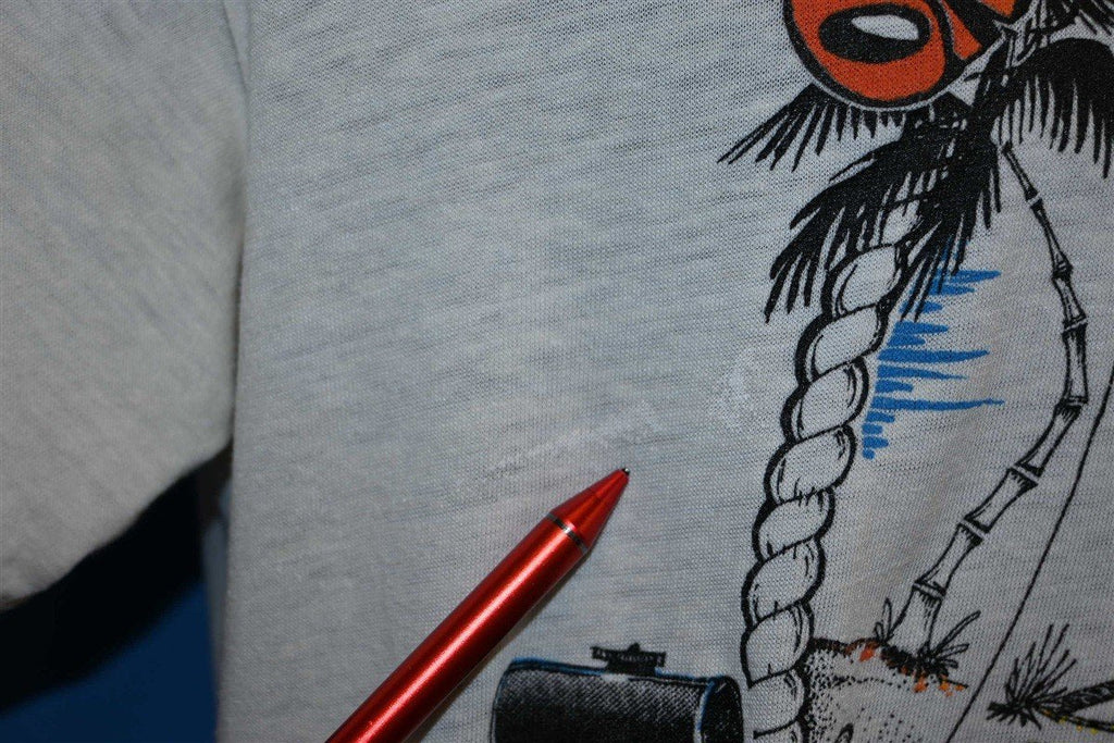 This wonderfully soft vintage beach tee declares, "On the 8th day God created Bahia Honda". Located in the lower Florida Keys, Bahia Honda is a beautiful island that mainly consists of Bahia Honda State Park. The island is mostly uninhabited, but an excellent destination for nature-lovers. Visitors are able to enjoy the local wildlife by swimming, snorkeling, boating, and fishing along the park's palm-tree lined shores.