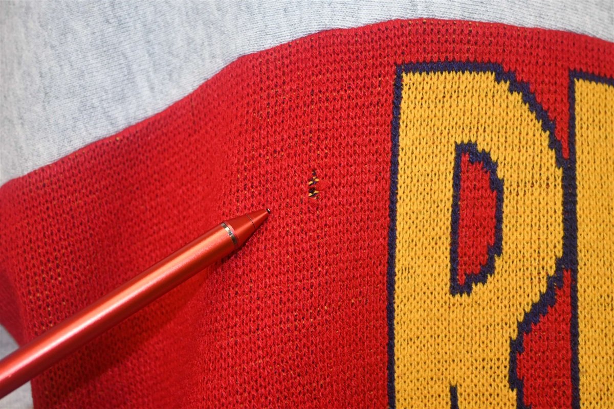 Since their inception, Ritz has maintained their recognizable yellow logo. In the 70s, the logo appeared on a pop art inspired sweater sported by the iconic disco singer Sylvester, and it later cropped up on more novelty apparel, like this sweatshirt.