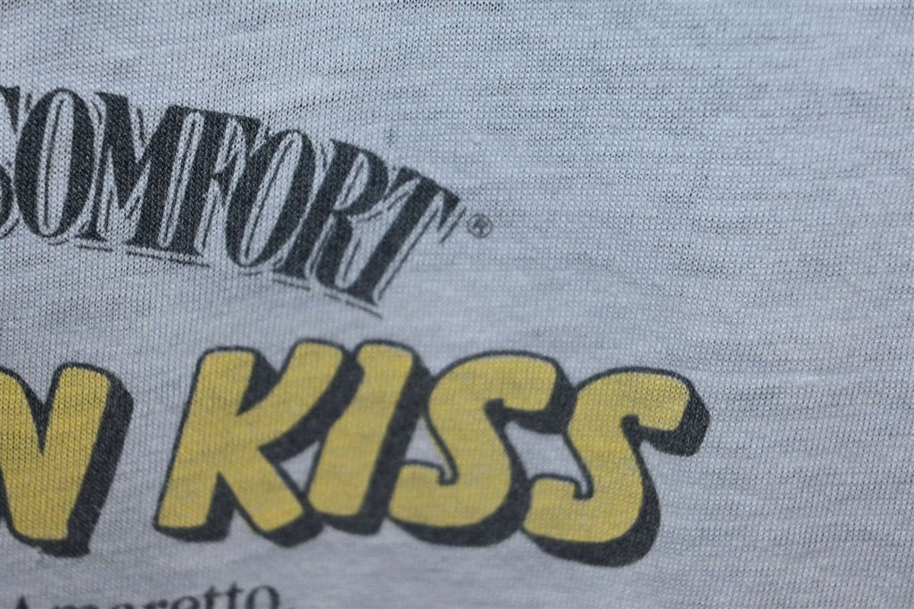 The fruit-flavored whiskey brand was first created all the way back in 1874, and this shirt was made in the 80s after it was purchased by the Brown-Forman Corporation. Under their ownership, several flavored variations of Southern Comfort were released, including cherry, lime, and Tabasco.