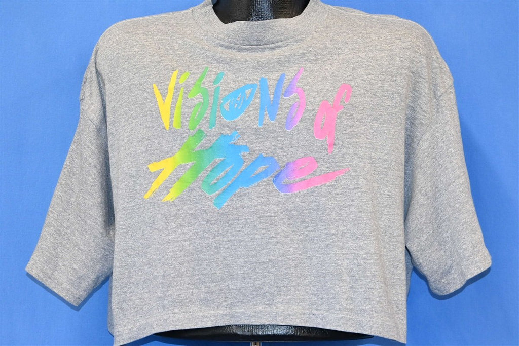 80s Visions Of Hope Neon Rainbow Crop Top Half Shirt t-shirt XXL