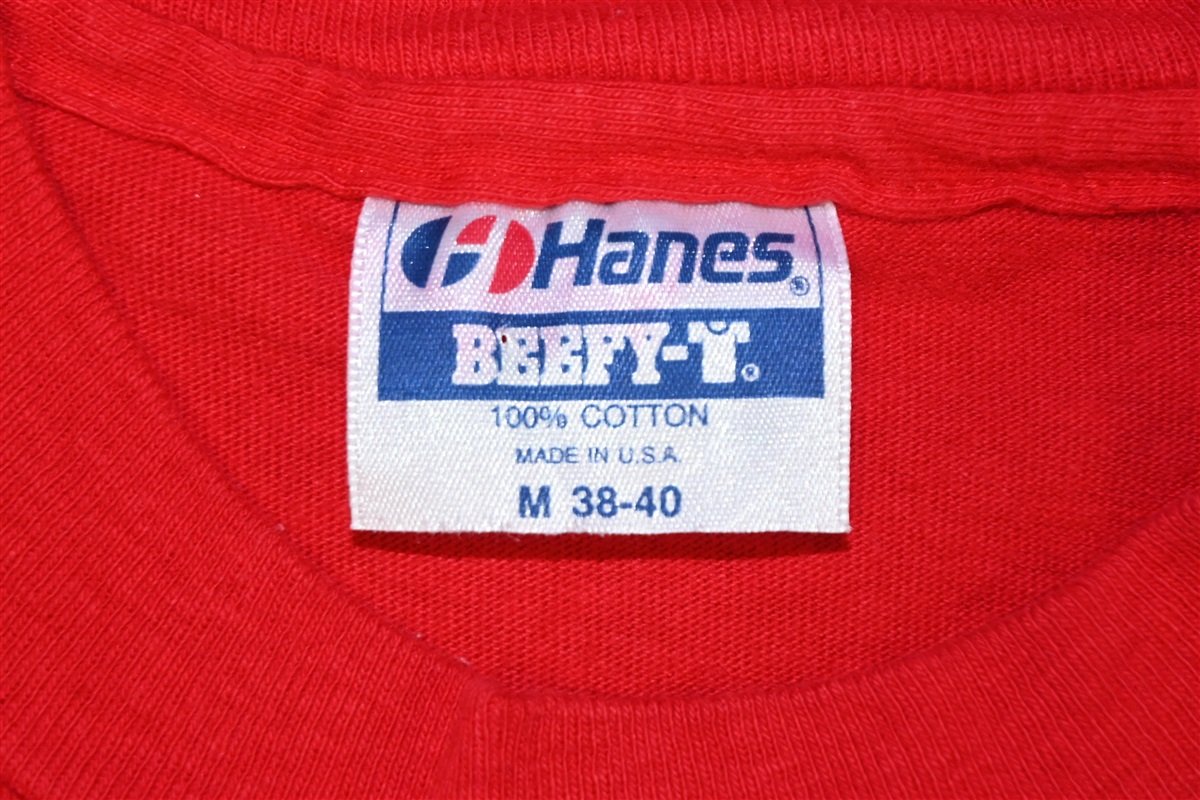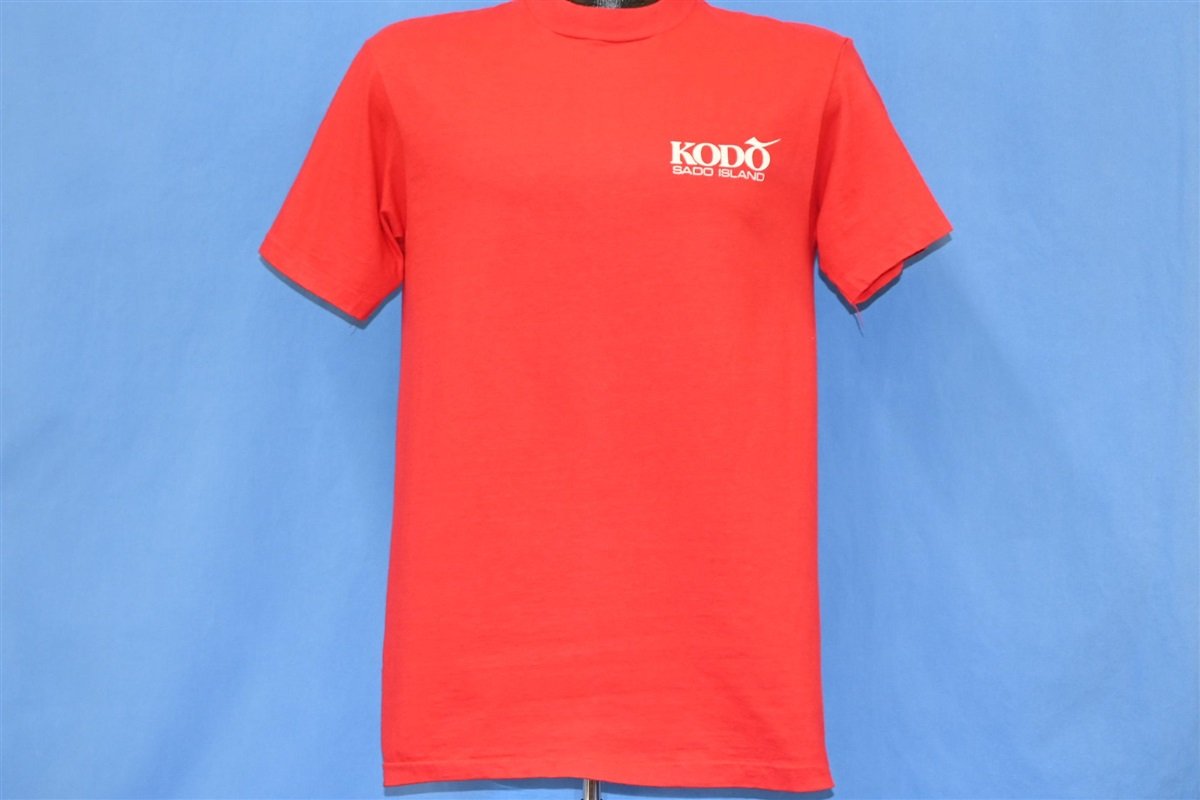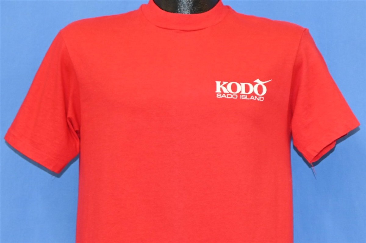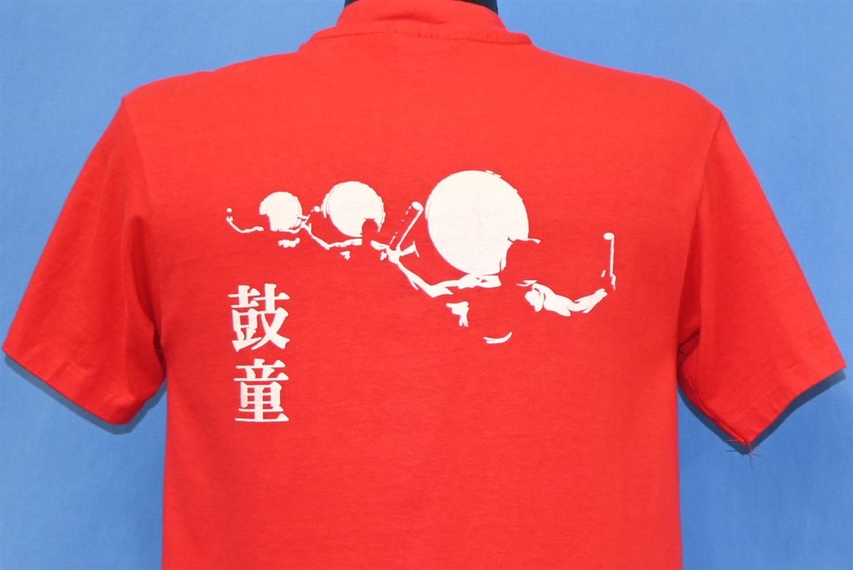This awesome tee was made to promote the taiko drumming troupe, Kodo . The group is based on Sado Island in the eastern part of Japan. A taiko is a Japanese drum, and the largest that Kodo uses is 660 pounds. Kodo is one of the most well known taiko troupes, and they performed three sold out shows at the 1984 Olympic Arts Festival in Los Angeles.