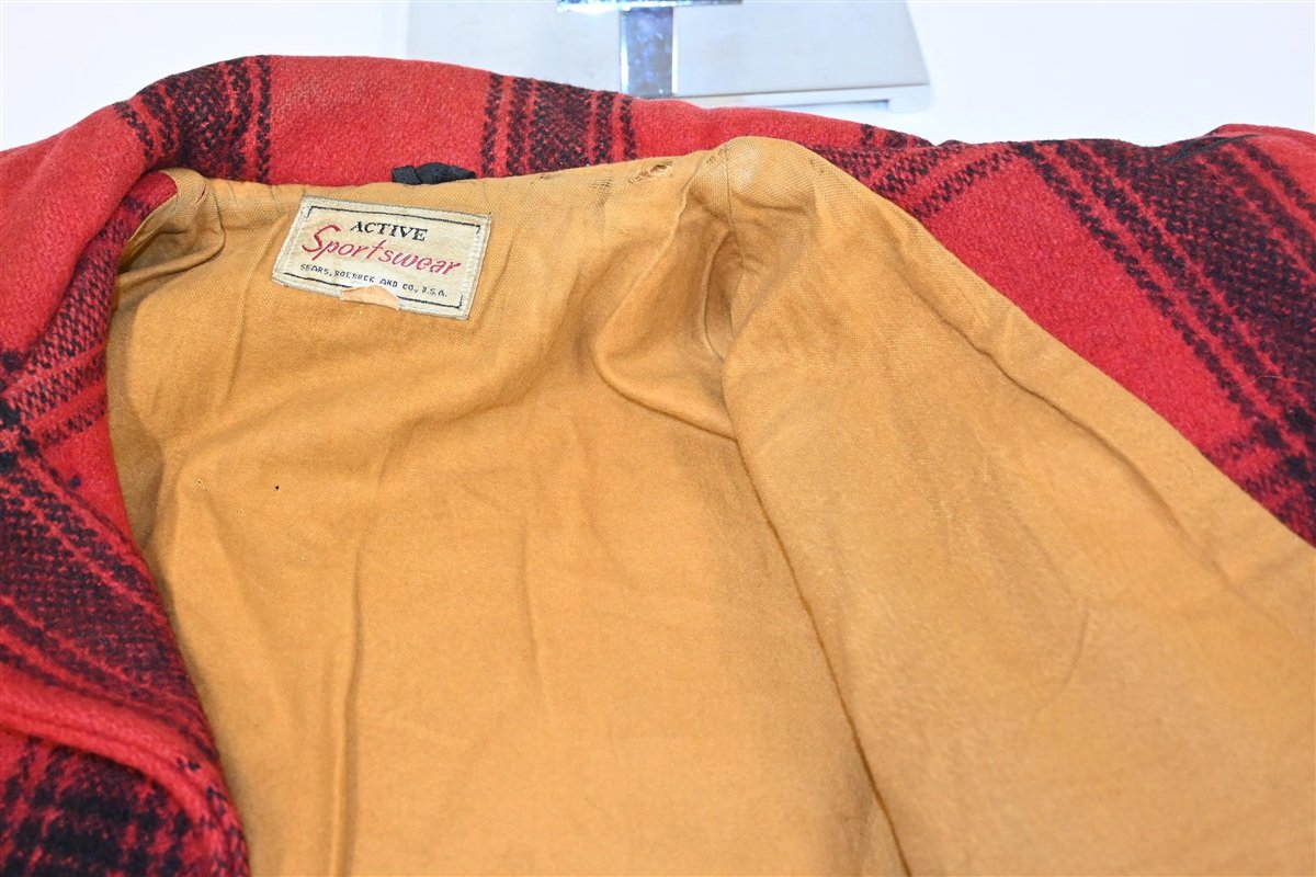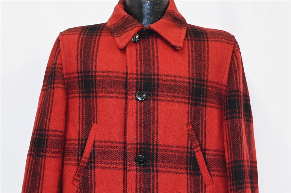 60s Sears Active Red Plaid Wool Hunting Jacket Large