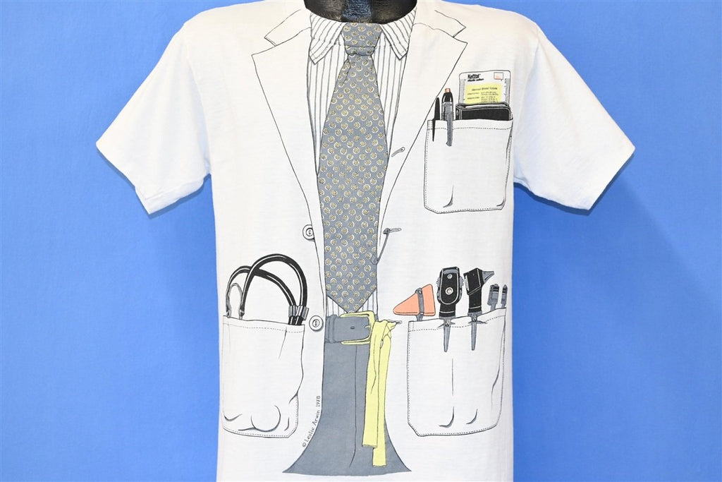 70s Doctor's White Lab Coat Leslie Arwin Costume t-shirt Large