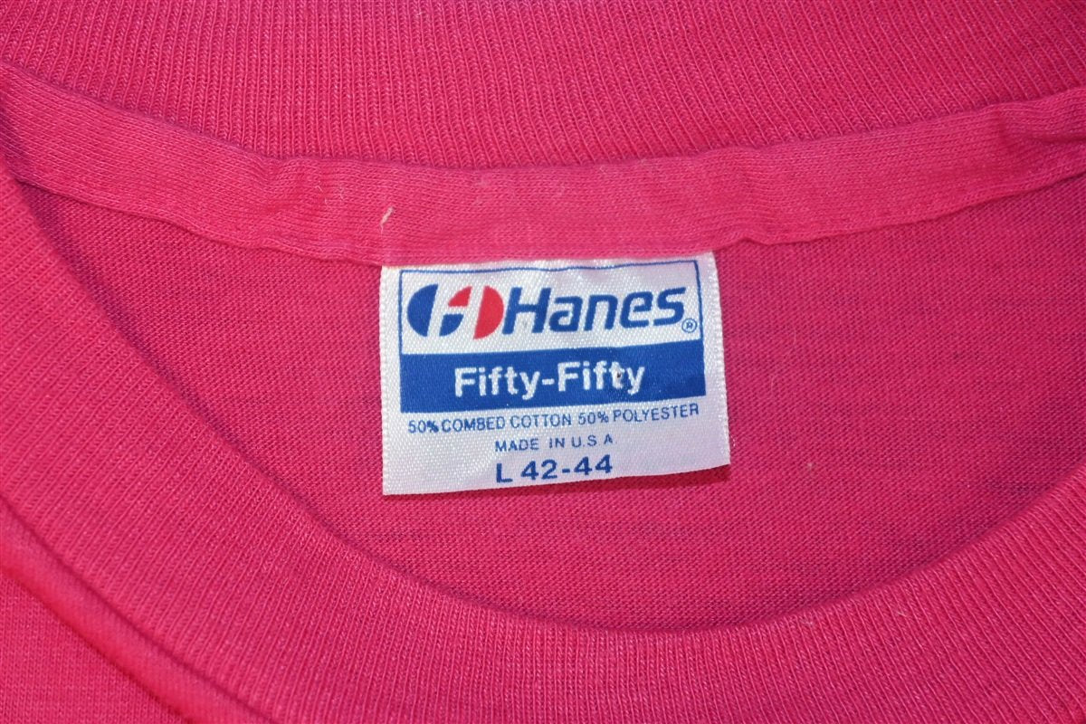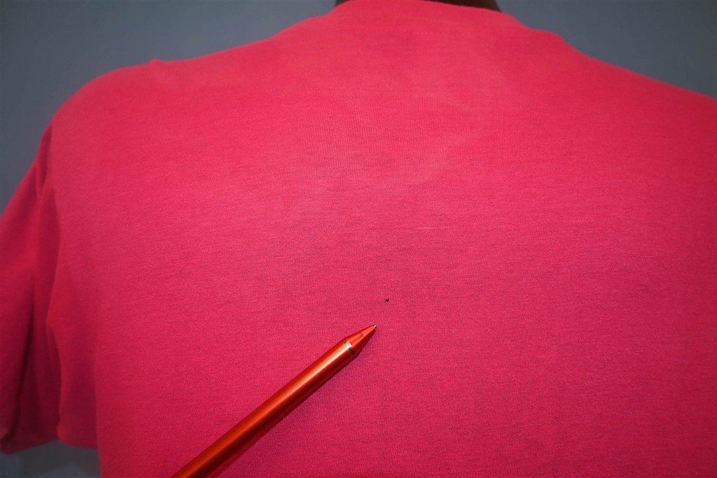 Fits like a modern unisex adult large. There are some small holes and light discoloration on the back, see pics.