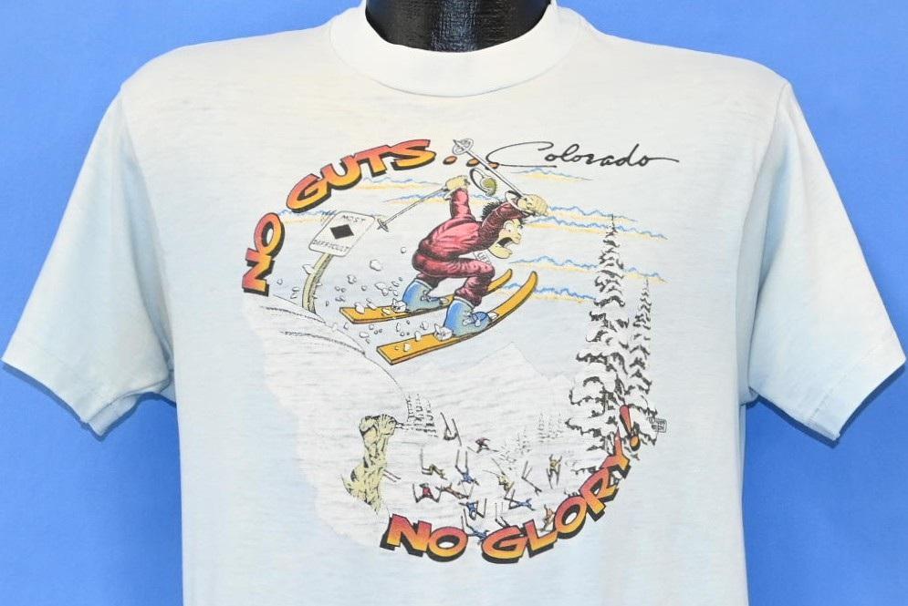 80s No Guts No Glory Ski Colorado Funny t-shirt Medium