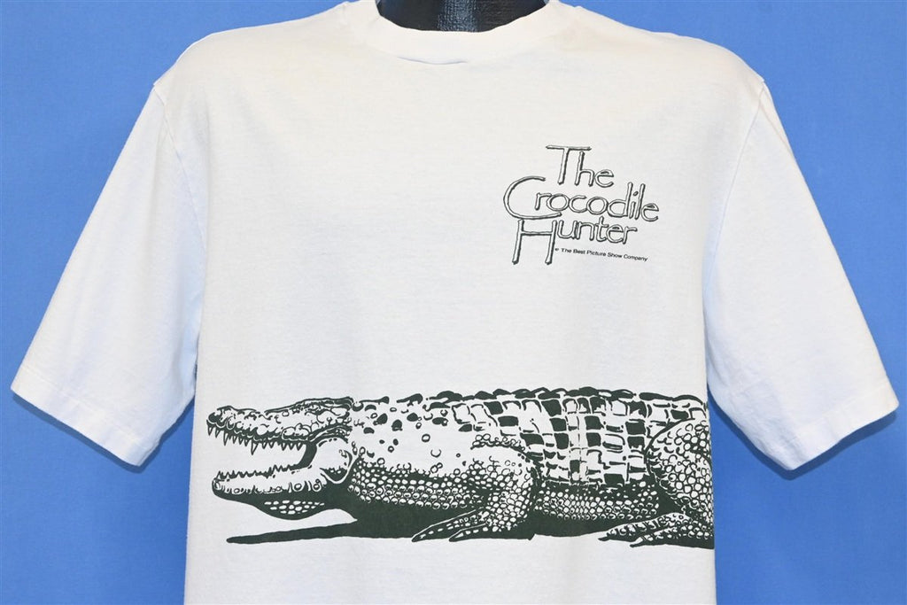 This awesome wraparound tee celebrates a late, great icon in the world of wildlife conservation, Steve Irwin. This shirt is a promotional tee for The Crocodile Hunter, the documentary television series that brought Irwin international fame. The show first aired in Irwin's home country of Australia in 1992, and it later gained widespread recognition through Animal Planet, where it proved to be the network's highest-rated series.