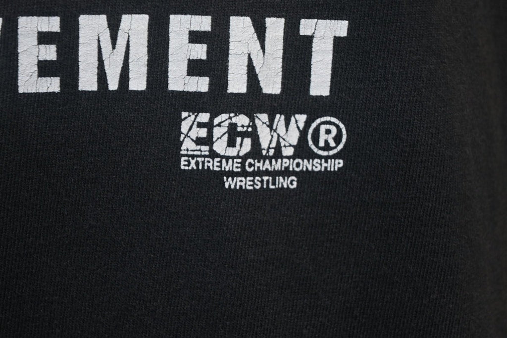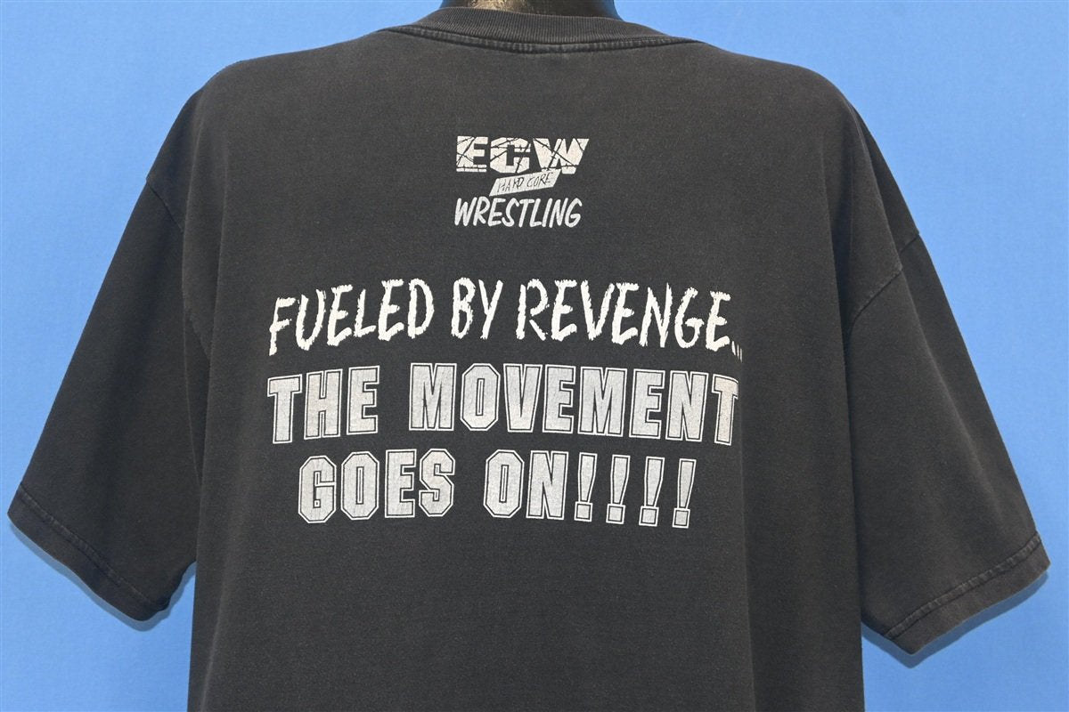 This awesome tee reps ECW or Extreme Championship Wrestling, a pro wrestling promotion that was born out of Philadelphia in the early 90s. This shirt sports a classic ECW design and the back proudly reads, "fueled by revenge The Movement goes on!!!!" Originally known as Eastern Championship Wrestling, the company was renamed and revolutionized by Paul Heyman, who turned ECW into an iconic cult phenomenon. The promotion was characterized by its "hardcore wrestling" and mature storylines, which wound up influencing other major promotions like WWE and WCW.
