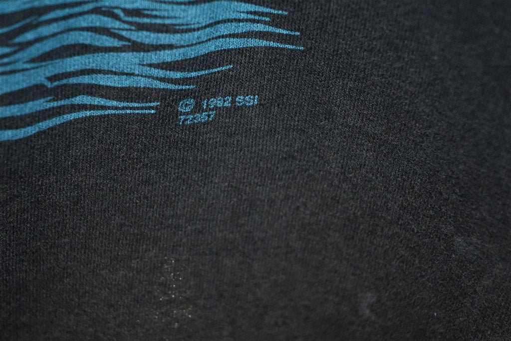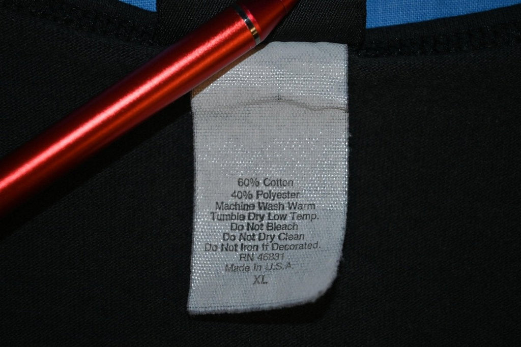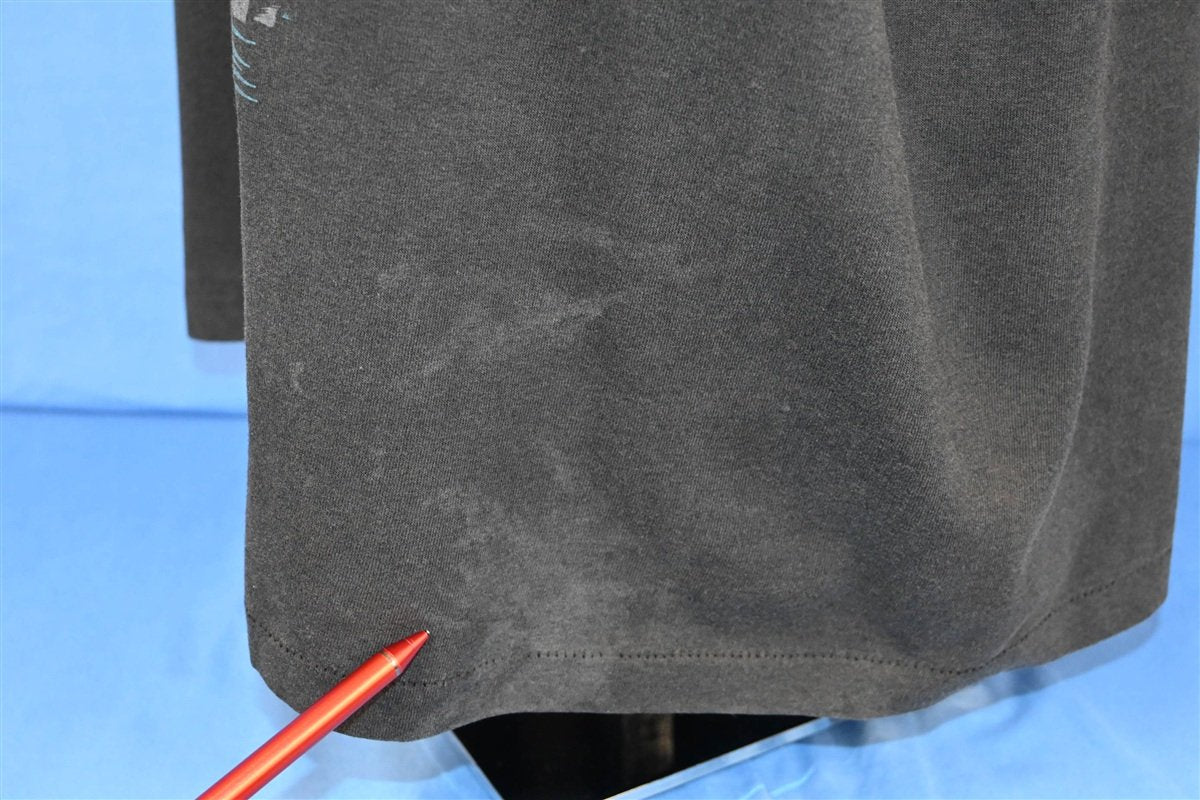 Fits like a modern unisex adult Extra Large. There is some fading along the back and the left side when wearing, see pics.