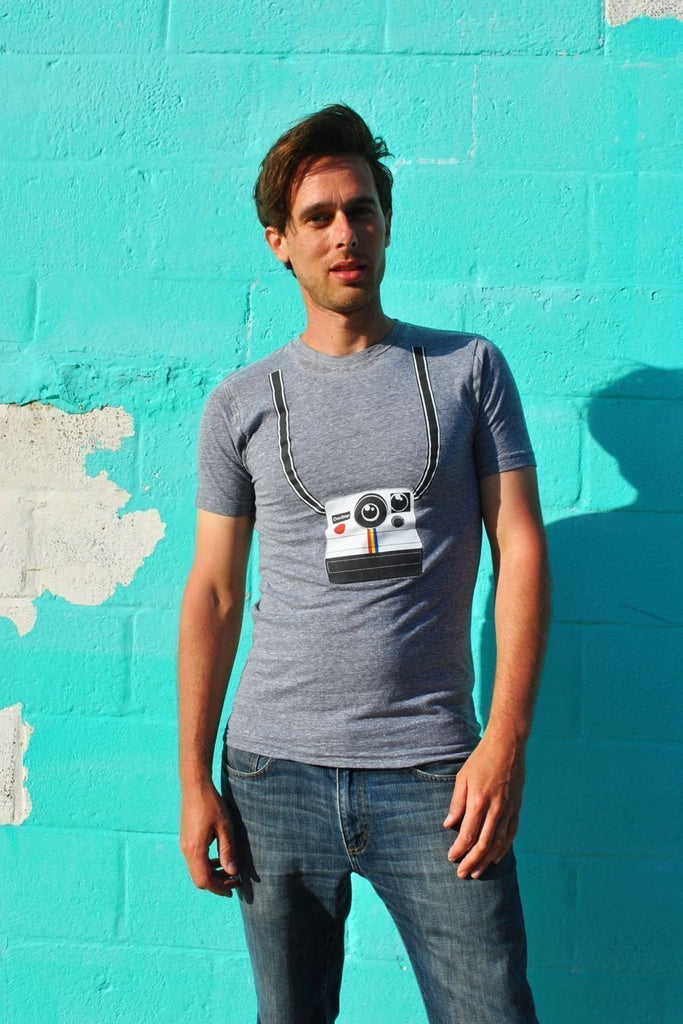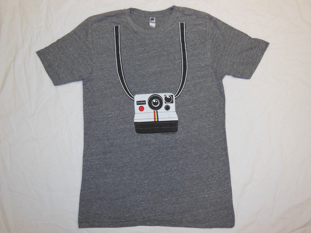 Who doesn't love a Polaroid Camera? Why not wear one around your neck, in t-shirt form! These t-shirts are all made in the USA, printed here, and are a poly cotton rayon tri blend!