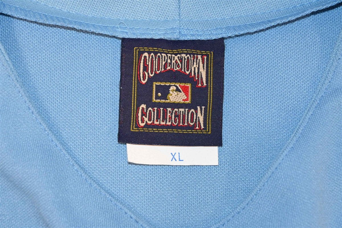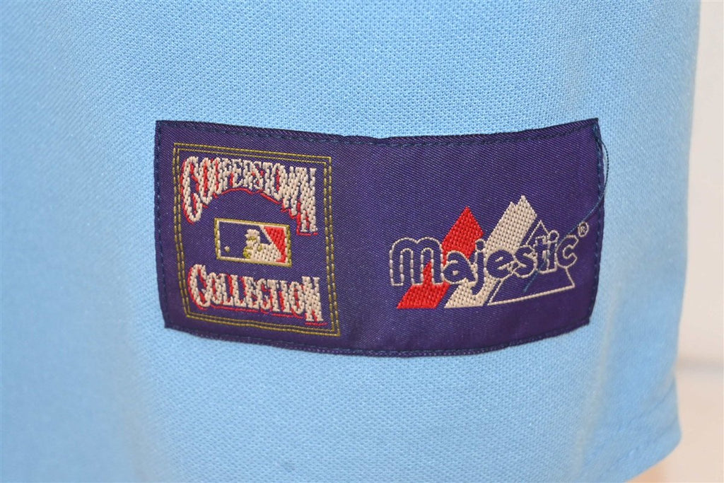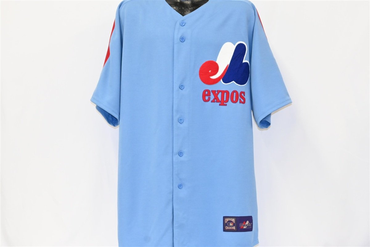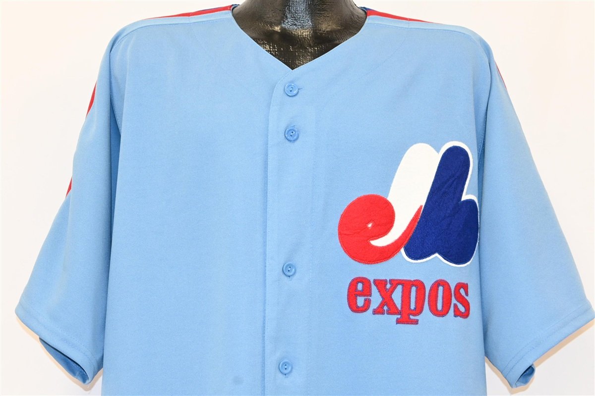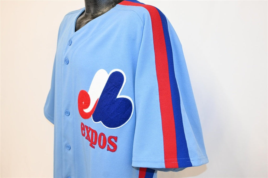 This cool jersey is a vintage replica from Cooperstown Collection. The brand was founded in the late 80s to cater to fans of baseball history, and their products are dedicated to replicating the former uniforms of beloved MLB teams. While this shirt was made in the early 2000s, it actually sports a design from the 1980s. This jersey reps the Montreal Expos, and it's modeled after their away game uniforms that were used from 1980 until 1988.