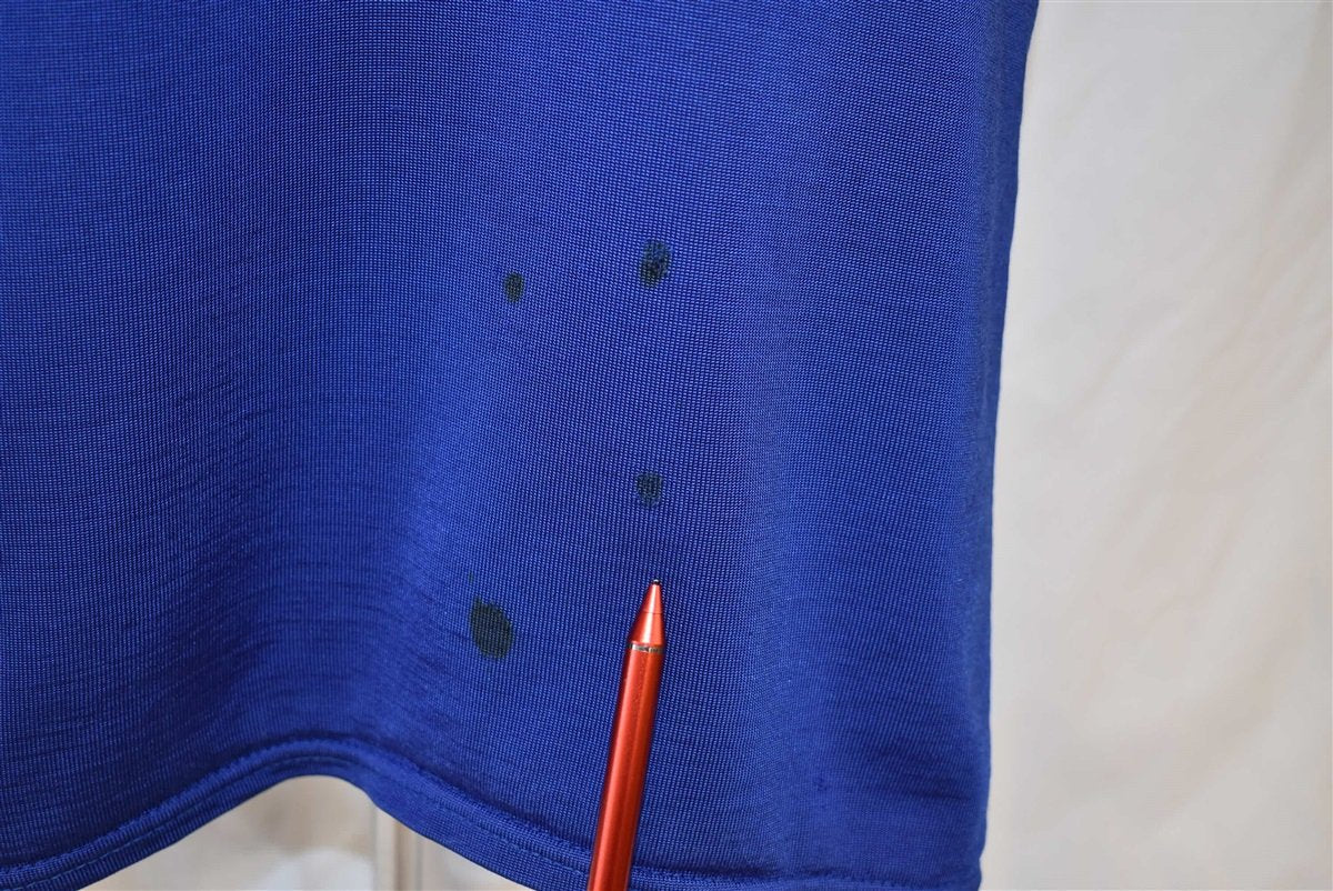 Fits like a modern unisex adult small. Spots on the front, see pics. Front is blank, graphic is on the back.