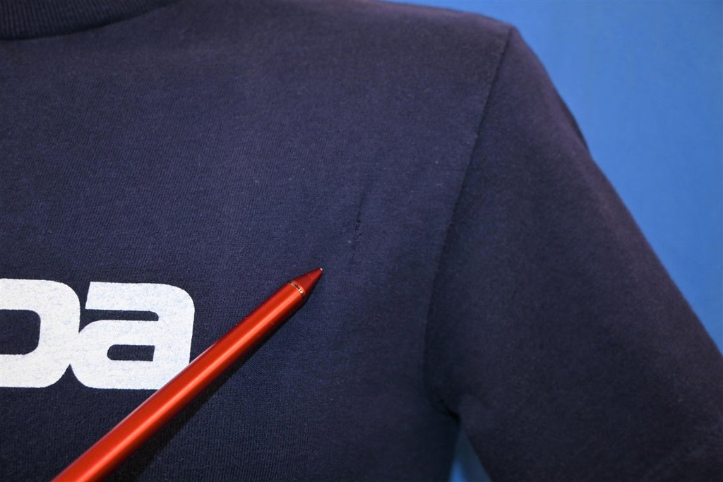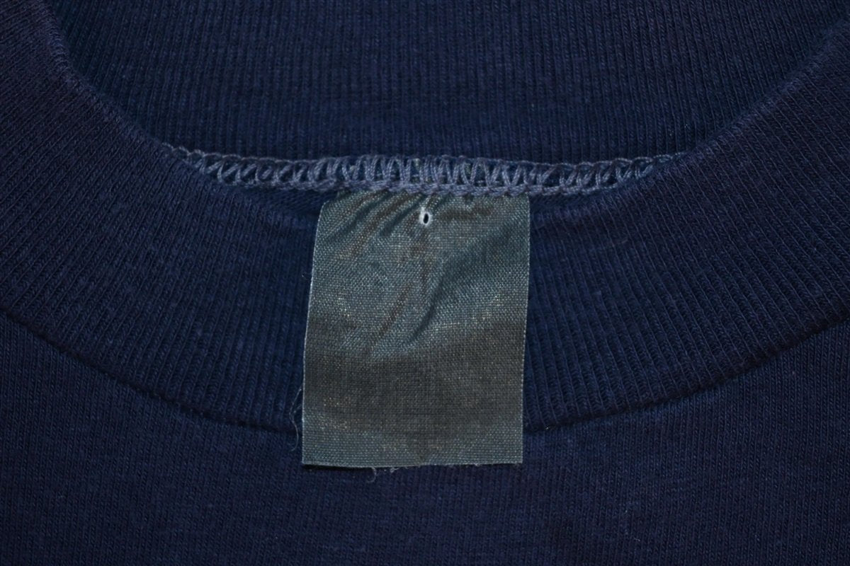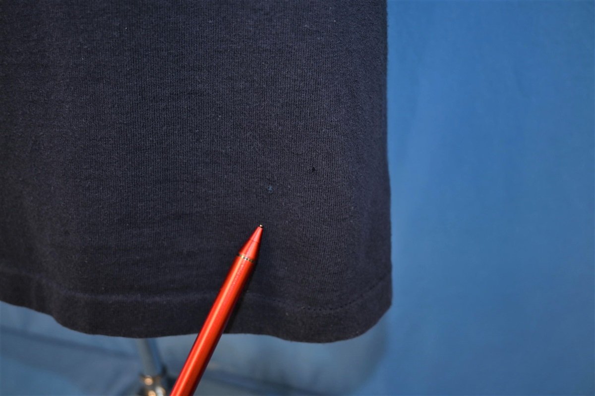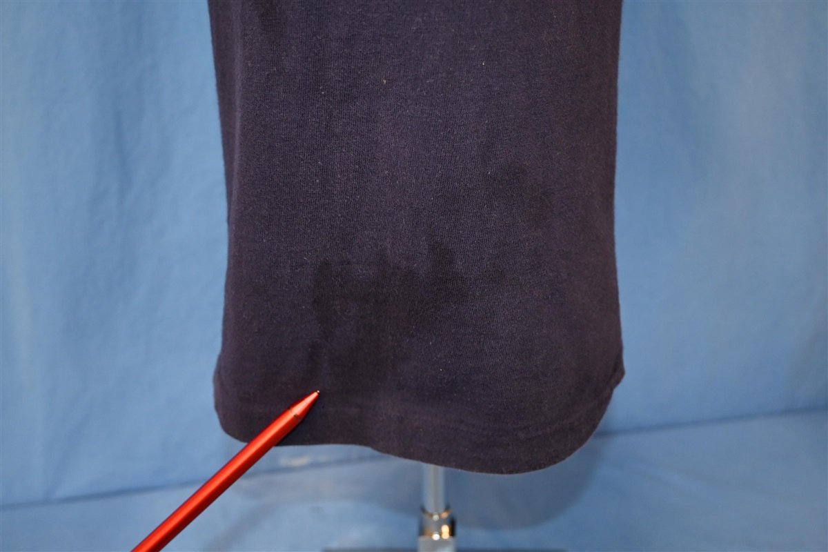 Fits like a modern unisex adult small. Several small spots and holes throughout, hanger fading on the shoulders, and repairs, see pics.