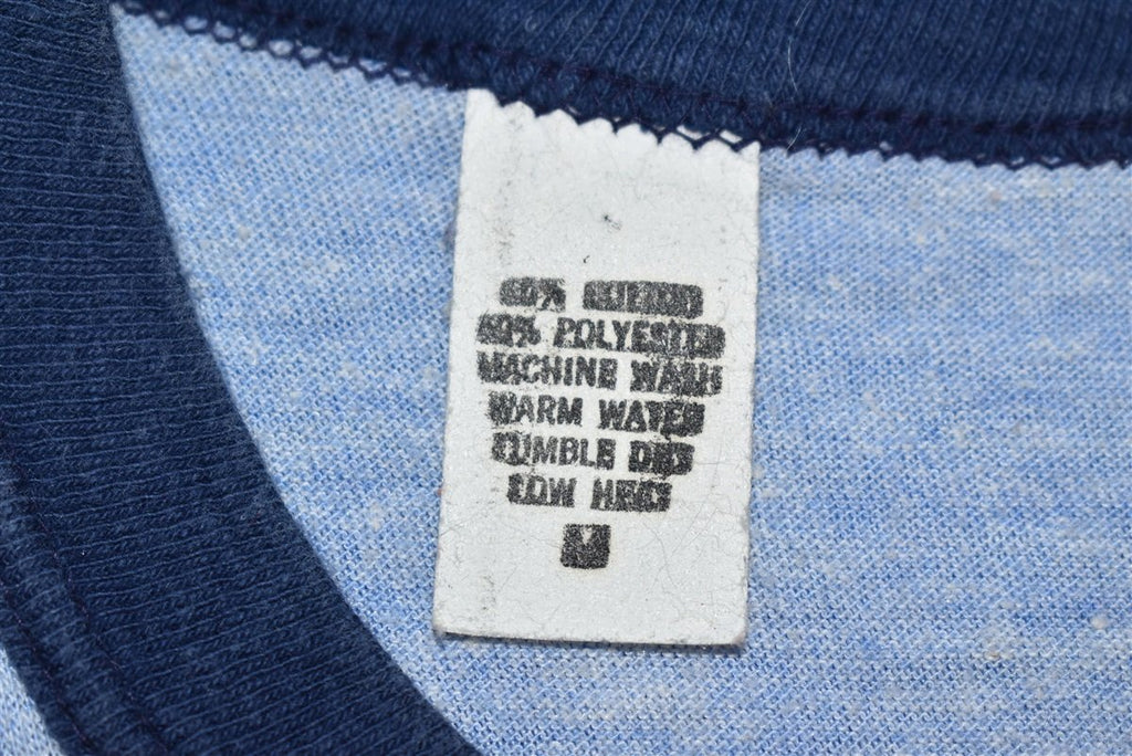 This vintage tee has held up beautifully since the 1970s. The classic ringer style and old school graphics perfectly captures its age. This appears to be a commemorative shirt made for the Steel High Rollers basketball team from the Steelton-Highspire School District in Steelton, PA.