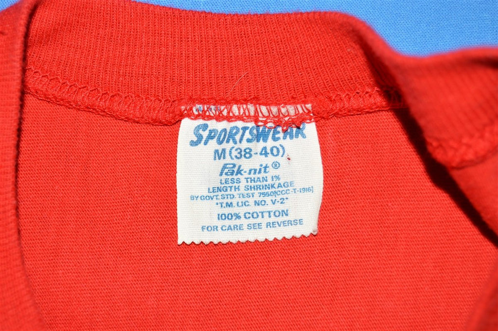 This shirt has held up amazing over the years and has tons of life left in it. Features one hundred percent cotton, old school block letters, and a 70s era Sportswear tag.