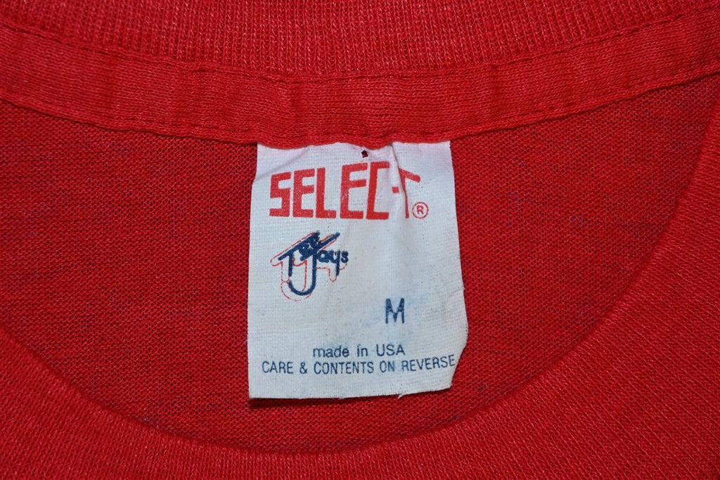 This sweet bright red t-shirt commemorates the New Times Phoenix 10k Race. This particular shirt is a keepsake from the race's 10th annual edition, which took place during the fall of 1985, and the back lists several sponsors of the event including Miller Lite Beer, Metro Mobile, Phoenix General Hospital, and Nike. This yearly 10k road race is organized by and named after the Phoenix New Times media company, which covers local news around the Phoenix, Arizona area. The race is a charity event that benefits organizations like Big Brothers and Big Sisters of Central Arizona.