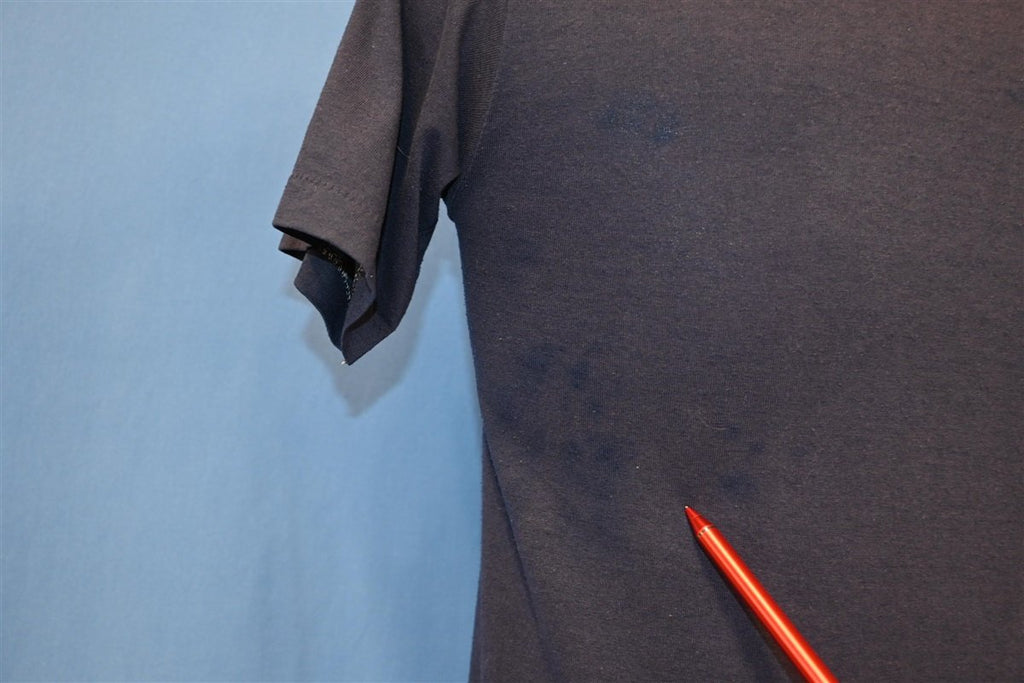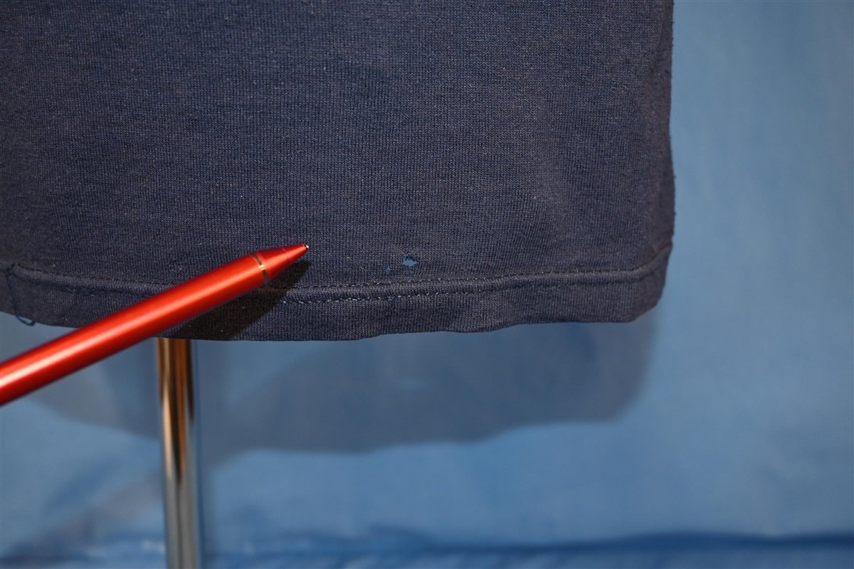 Fits like a modern unisex adult small. There are some small holes and light discoloration, see pics