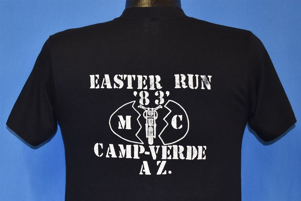 This vintage tee was specially made for the 1983 Easter Run at Camp Verde, Arizona. It's held up great after all these years and has a ton of life left. Features soft poly cotton, old school graphics, and a classic Sport-T tag for that true vintage look and feel.