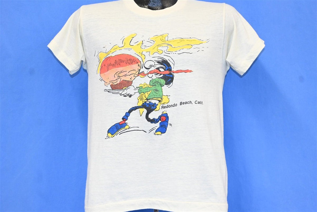 This awesome double-sided tee is from a beloved family-owned business that used to be found in Redondo Beach, California. The shirt was made for Gino's Pastry Shop which was opened all the way back in the 50s, by Gino Giacinti and his wife Bernice. The couple operated the popular bakery all the way up until their retirement in 2000, and for years it was a favorite among Hollywood Riviera locals.