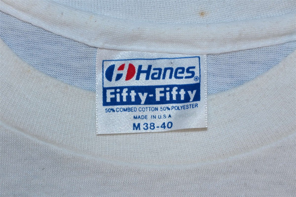 This race souvenir tee commemorates the Healthfest 5K Run held on February 25, 1984- very likely referring to the one in Austin, Texas. The running logo depicted here was created by an artist by the name S. Reinking. It's aged really well after all this time, preserving that old school magic for years to come.