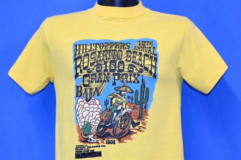 This vintage tee marks the 12th annual Hilltoppers Gran Prix  in 1986. It's aged nicely over the years, capturing that old school magic for more to come. Features awesome graphics, amazing one hundred percent cotton, and a classic Anvil tag.