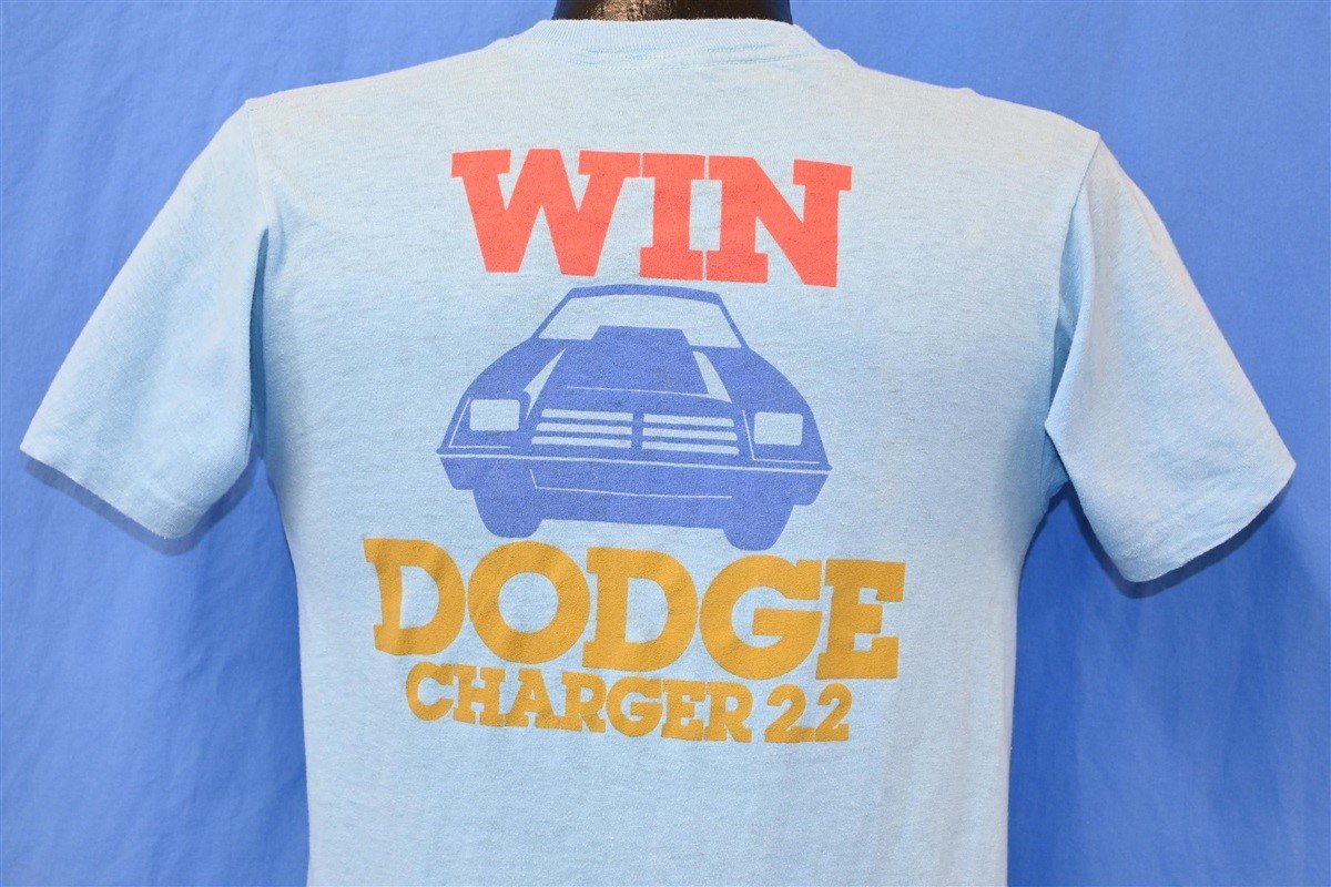 This promo tee might have been made for a contest or sweepstakes circa 1980s. The event touted a chance to win a Dodge Charger and appears to have been sponsored by the clothing company Gap. Features double sided print, amazing one hundred percent cotton, and a classic Screen Stars tag. It's aged beautifully over the years, capturing that old school magic for more to come.