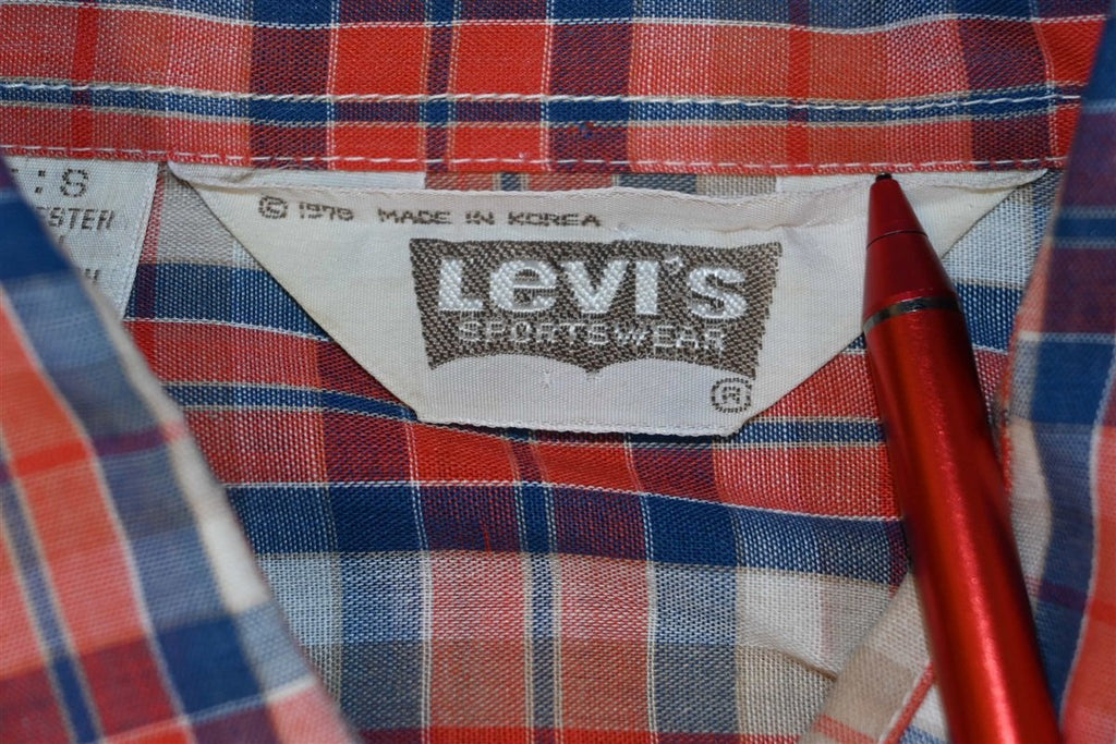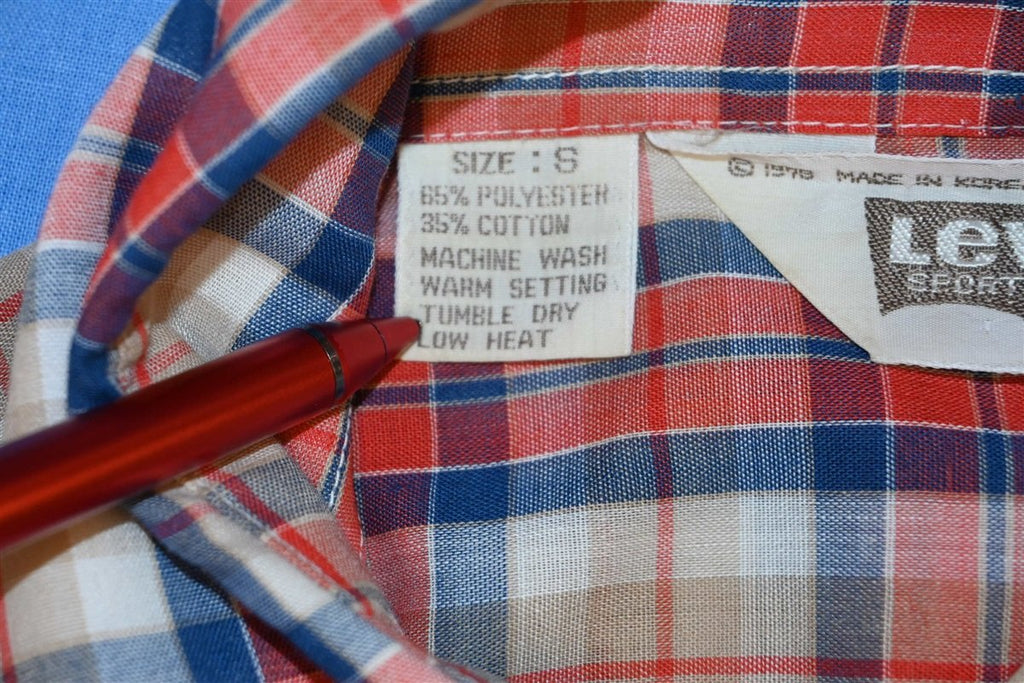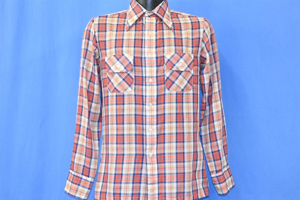 70s Levi's Big E Red Tan Blue Plaid Button Down Shirt Small