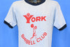 70s York Barbell Club Champion Blue Bar Ringer t-shirt Medium