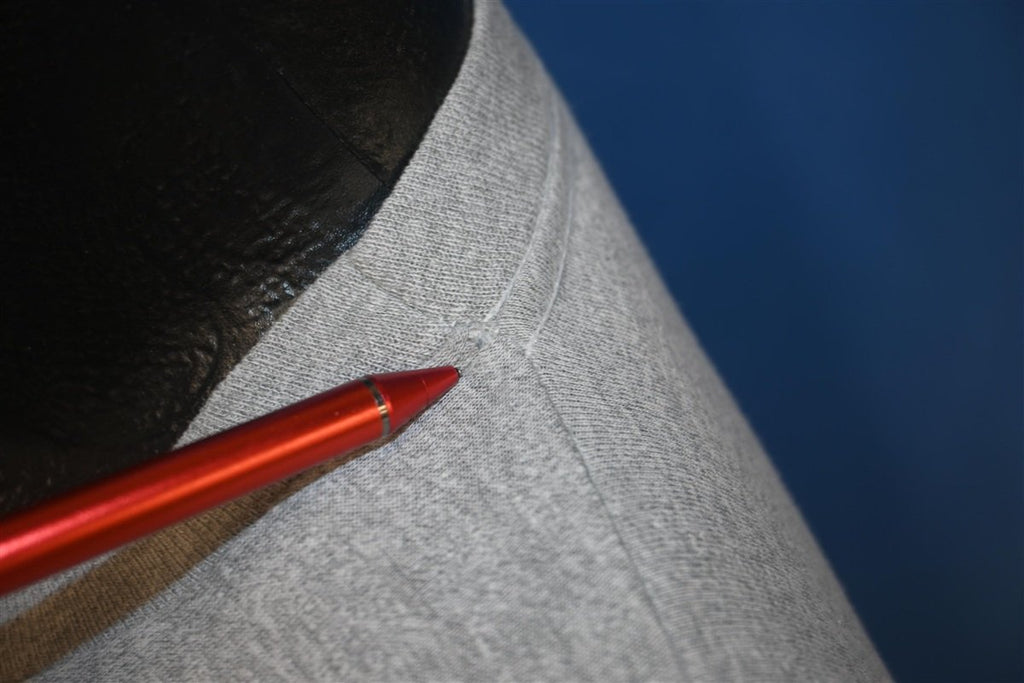 Fits like a modern unisex adult medium. There's a hole near the collar, see pics.