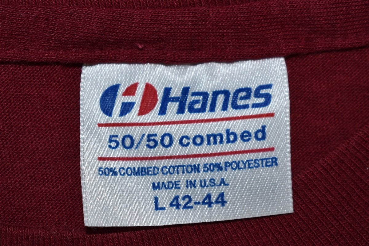 Fits like a modern unisex adult medium. Double sided print. This shirt is maroon.