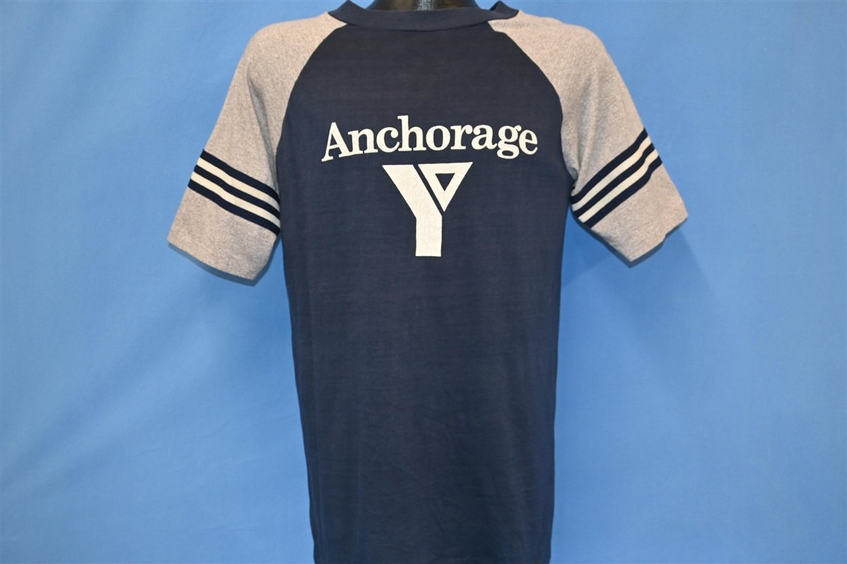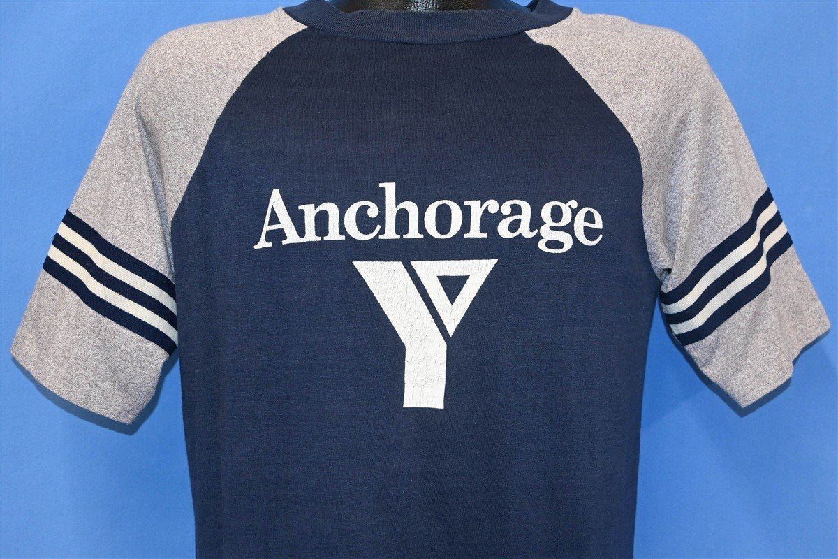 80s Anchorage YMCA Logo Striped Raglan Sleeve t-shirt Medium