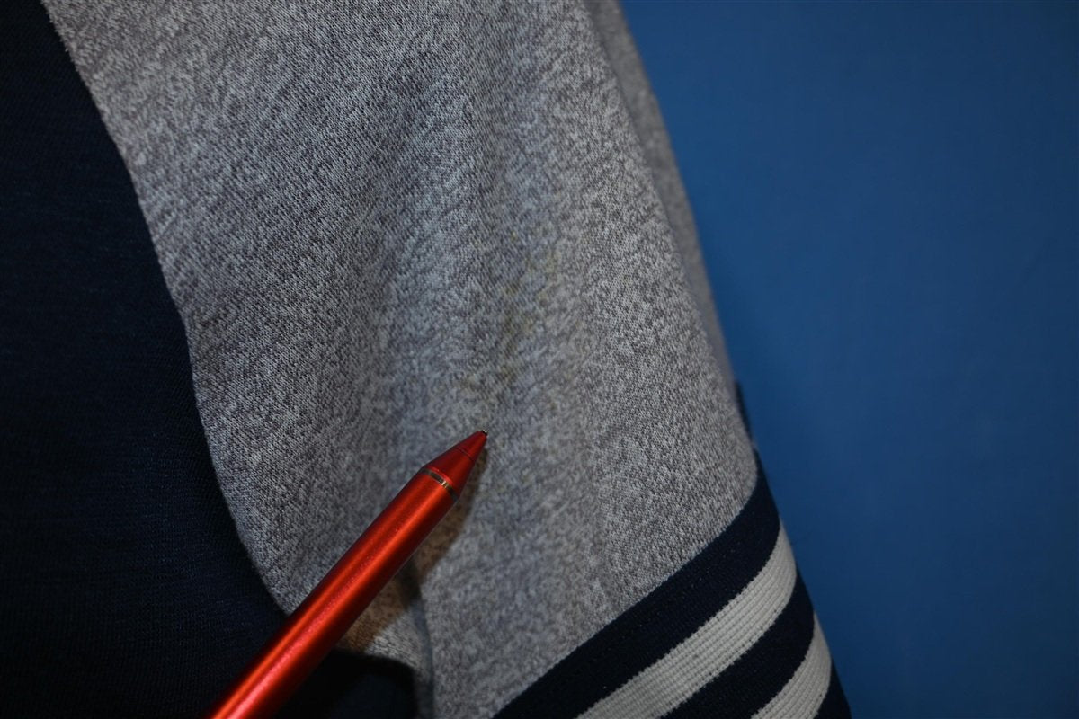 Fits like a modern unisex adult medium, although the tags says large. Light spot on the left sleeve when wearing, see pics.