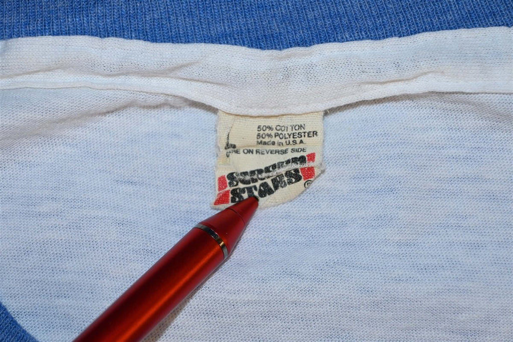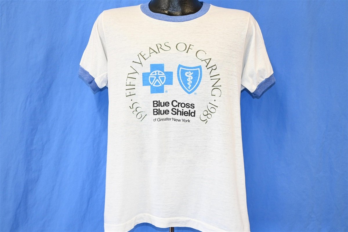 This vintage tee was specially made for the 50th anniversary (1935-1985) of the Blue Cross Blue Shield of Greater New York. It's held up great since the 1980s, capturing that old school charm for years to come. Features a classic ringer style, soft poly cotton, and an eighties era Screen Stars tag.