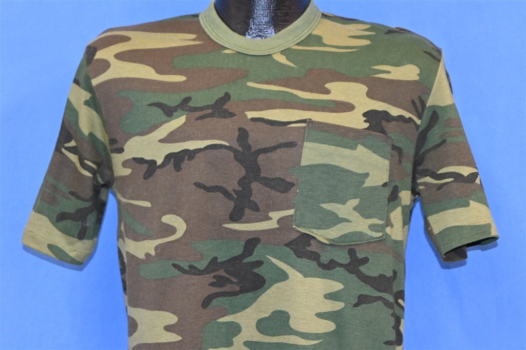 80s Camo Green Woodland Camouflage Pocket t-shirt Medium