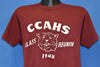 This vintage tee is on original keepsake from a high school reunion in the 1980s. It belonged to the graduate class of 1948 at CCAHS. This may have been a handful of schools including Campbell County High School, Crossroads Charter Academy, or Clay Chalkville High School. Features a cool mascot graphic and poly-cotton blend.