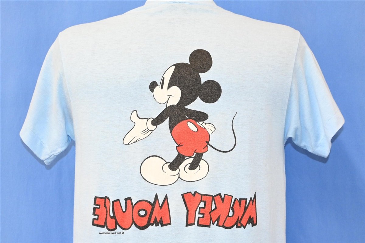 This delightful vintage shirt features double-sided graphics of Disney's beloved mascot, Mickey Mouse. The shirt also mentions Florida, the home state of the Walt Disney World Resort complex. This shirt was made in the 80s, a decade in which the Disney Company experienced some exciting changes. As the animation industry declined in the 80s, Disney set their sights on new theme park opportunities. They opened their second Disney World park, Epcot in 1982, and a year later they opened their first park outside of the US, Tokyo Disneyland.