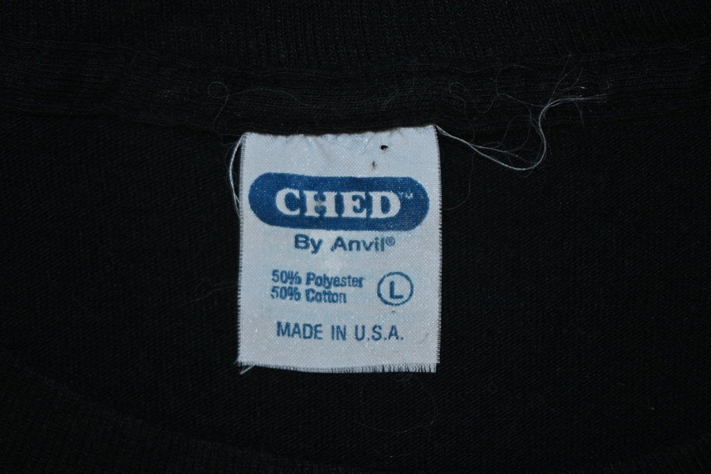 This vintage shirt features a graphic of a Smith & Wesson Model 29, and the quote "Go ahead make my day." This six-shot, double action revolver was famously used in the 1971 Clint Eastwood film, Dirty Harry, and the quote on this tee is also taken from Eastwood's character in the film. The movie, which starred Eastwood as the titular, San Francisco Police Inspector "Dirty" Harry Callahan, popularized the .44 caliber Magnum revolver, and sales of the pistol increased as audiences clambered to own the same gun as the antihero inspector.